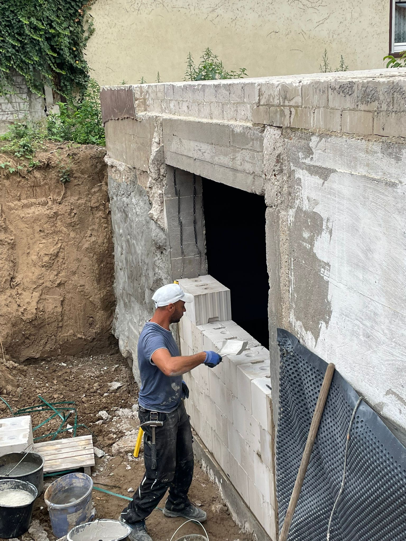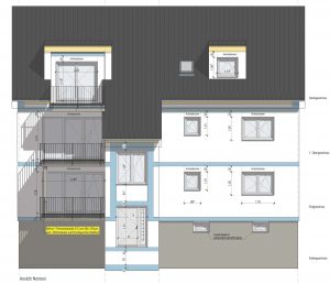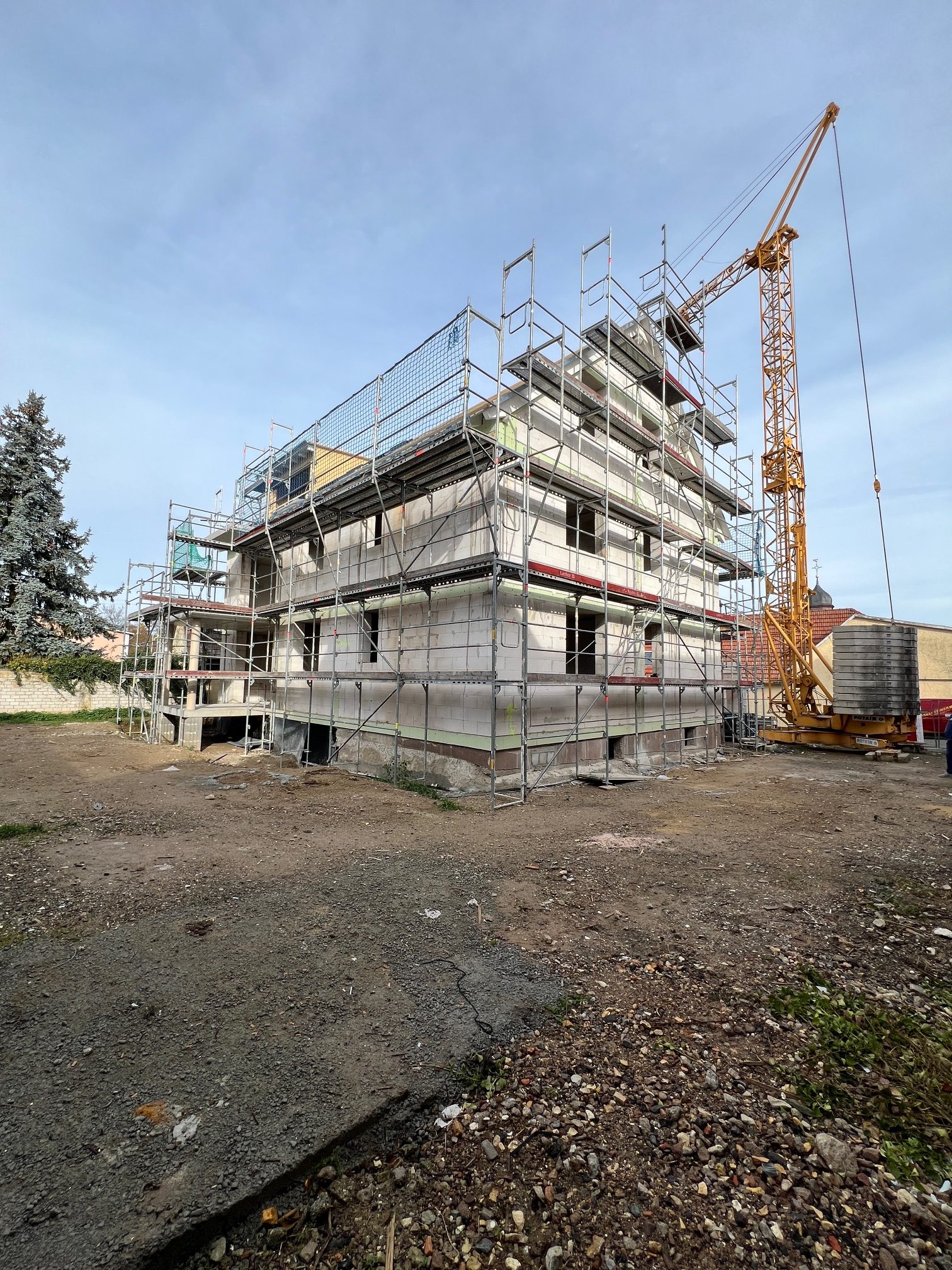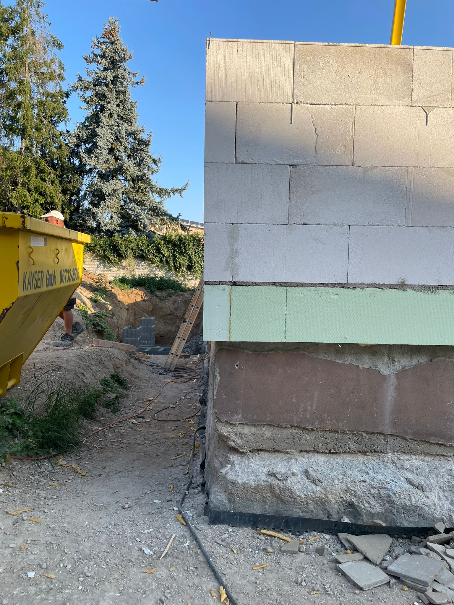Nach statischer Prüfung wurde das Bestandshaus abgerissen. Der massiv gemauerte Keller wurde erhalten. Der darauf erstellte Neubau wird nach KfW Effizienzhaus 55 Standard errichtet.